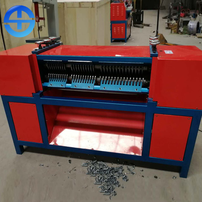 Машина стриппера радиатора конструирована для того чтобы отделить радиатор утиля для повторно использовать медь и алюминий с высокой эффективностью и стабилизированным представлением. Она может обнажать радиатор чей расстояние медной трубки разбивочное 19mm, 21mm или 25mm. Перед обработанный, радиаторы будут отрезаны с ленточнопильным станком в части некоторой ширины. Она может отделить один слой или 2 радиатора слоев. Когда радиаторы больше чем 2 слоя, оно будет отрезано в один слой или 2 слоя машиной ленточнопильного станка.