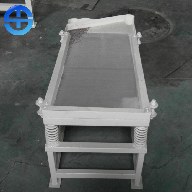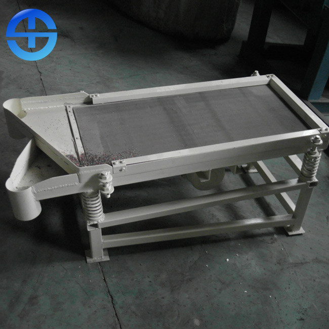 Вибрируя машина таблицы очень практически в химикате, еде, медицине и других индустриях. Она имеет высокую экранируя точность, большие перерабатывающие мощности, простую структуру, низкое энергопотребление, малошумный, длинный срок службы, хорошее запечатывание, меньшую утечку пыли и удобное обслуживание. Часто сотрудничайте с другим механическим оборудованием, как транспортер, подъем, дробилка, etc., для выполнения автоматической деятельности всего сборочного конвейера. Линейная машина скрининга порошка использует мотор вибрации как источник вибрации, так, что материал будет брошен вверх на экран и двигает вперед в прямую линию. Материал равномерно входит во вход питания экранируя машины от фидера, и производит несколько спецификаций верхних и более низких материалов экрана через разнослоистый экран, которые discharged от их соответственно выходов. Потому что материальная траектория линейное движение, она вызвана линейным экраном или линейным вибрируя экраном.